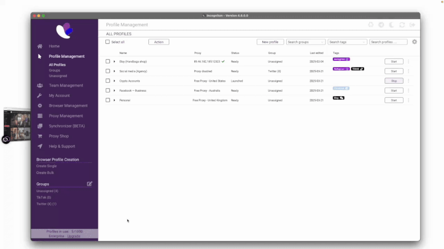 Incogniton is a privacy-focused browser that allows you to create and manage multiple online identities without triggering detection algorithms. It provides unique browser fingerprints for each profile, presenting each account like it is being accessed from a different device.