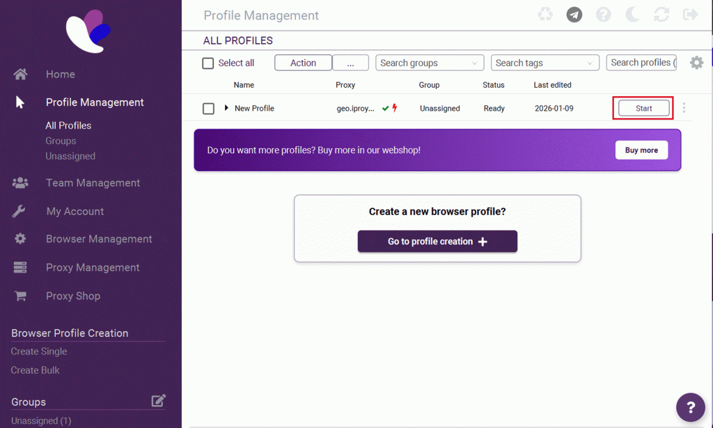 Step #8: Launch a profile to open a fully isolated browser environment using your profile settings.