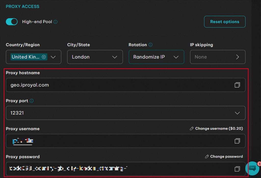 Step #4: Set up your proxies in the IPRoyal dashboard and copy your proxy credentials (IP, port, username, password).